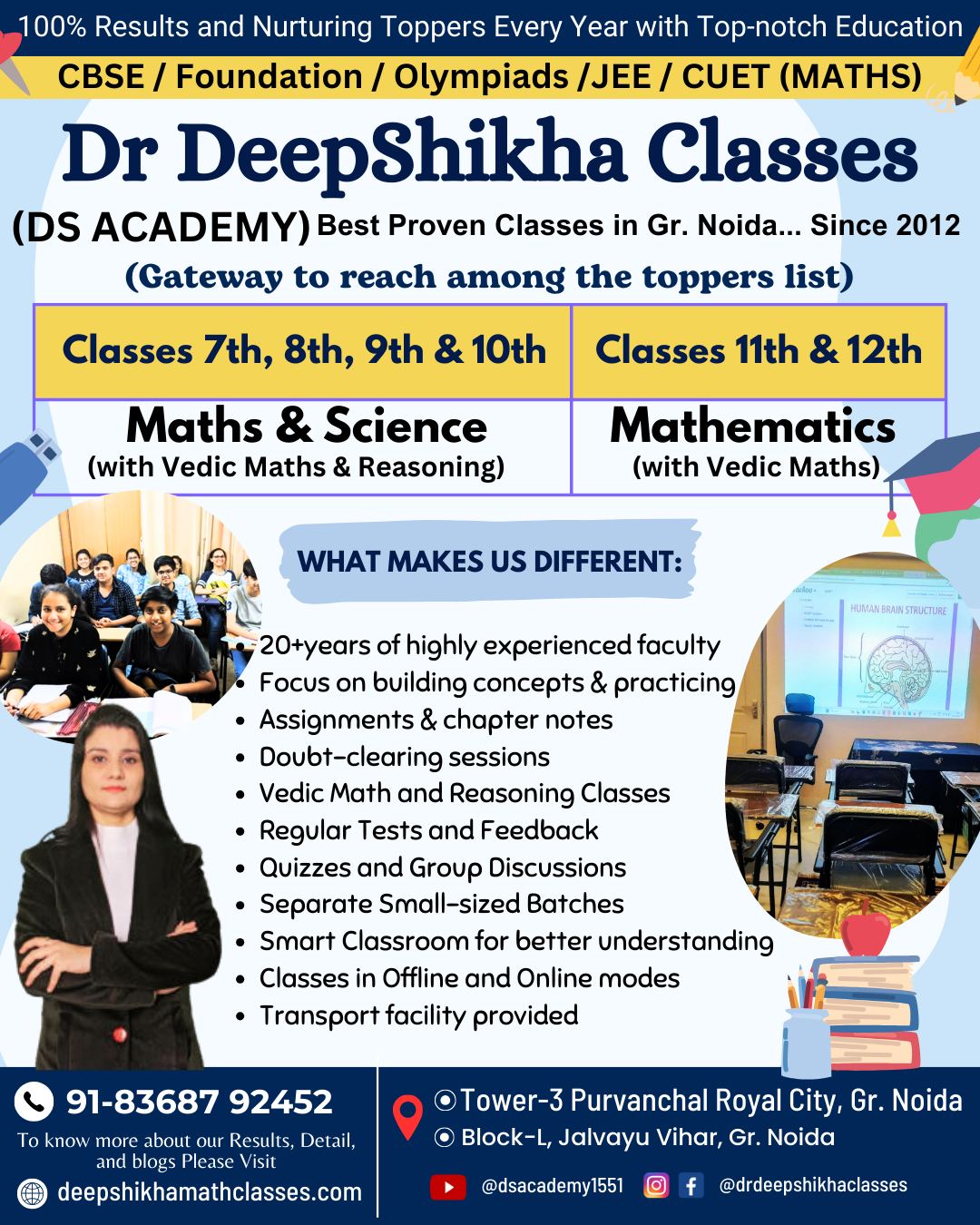 New batches are starting soon at Dr. DeepShikha Classes! 🚀 Join now to secure your spot in our expert-led coaching programs for Math and Science. Experience concept-based learning, proven strategies, and personalized guidance to achieve your academic goals. Don’t miss this opportunity – enroll today!
